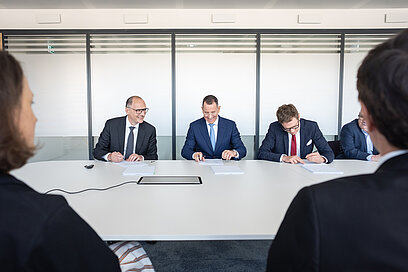 Group photo, left to right: Andreas di Egidio, AOP Health VP BD & Alliance Mgmt., Dr. Christoph Klade, AOP Health CSO, Jean-Michel Quinot, DI, MBA, AOP Health COO, Dr. Martin Steinhart, AOP Health CEO, Dr. Andreas Kluth, RHEACELL COO, Dr. Christoph Ganss, RHEACELL CEO, Gwenaelle Kerforn, AOP Health CHRO, Bernhard Nachbaur, LL.M., AOP Health CEO, Dr. Kurt Krejcy, AOP Health CMO, Eszter Kormann,MSc., AOP Health Sen. BD Manager.